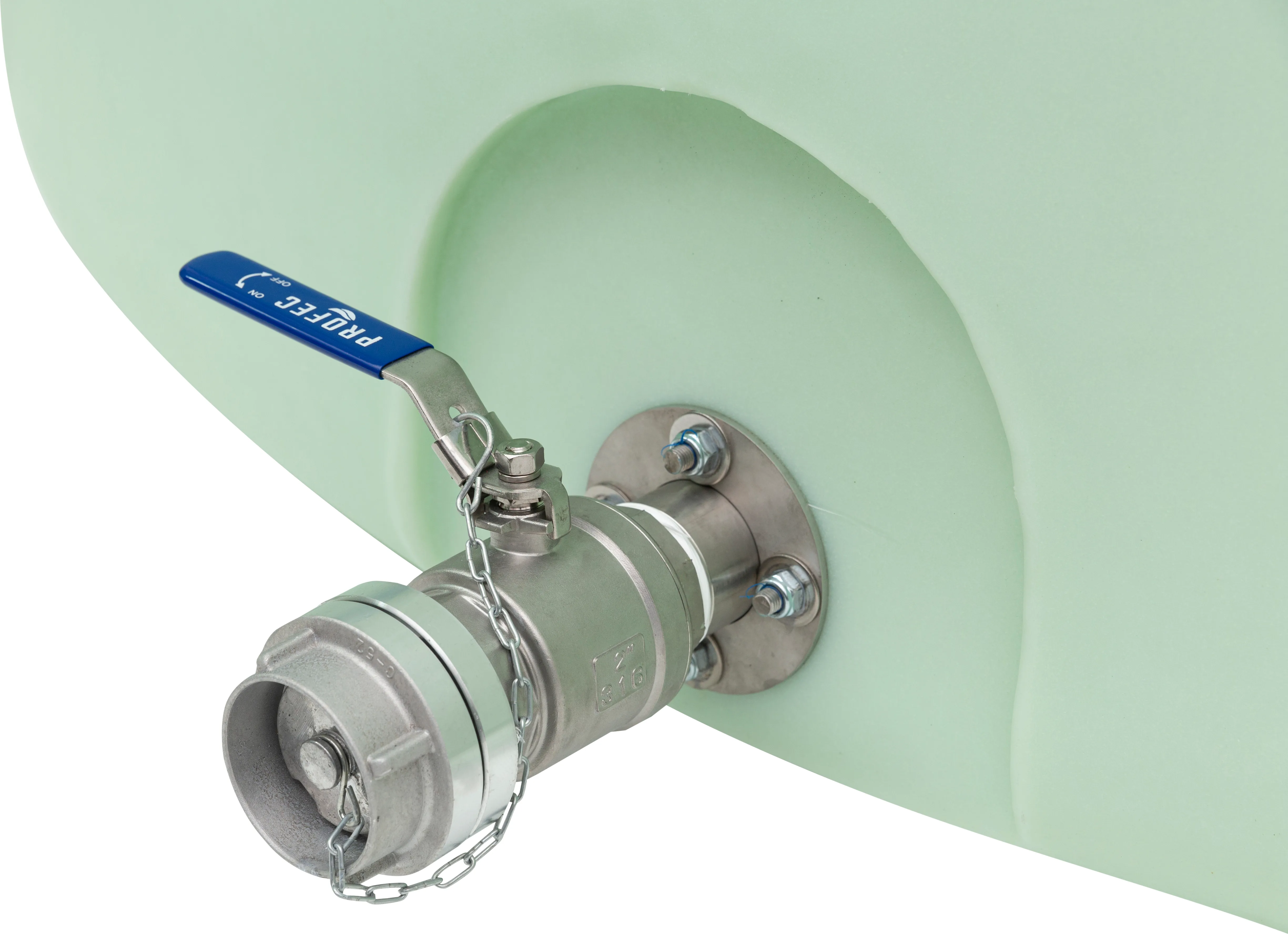 - —2” PVC-U uzpildes līnija ar PVC-U lodveida vārstu un STORZ alumīnija sakabe darba augstumā