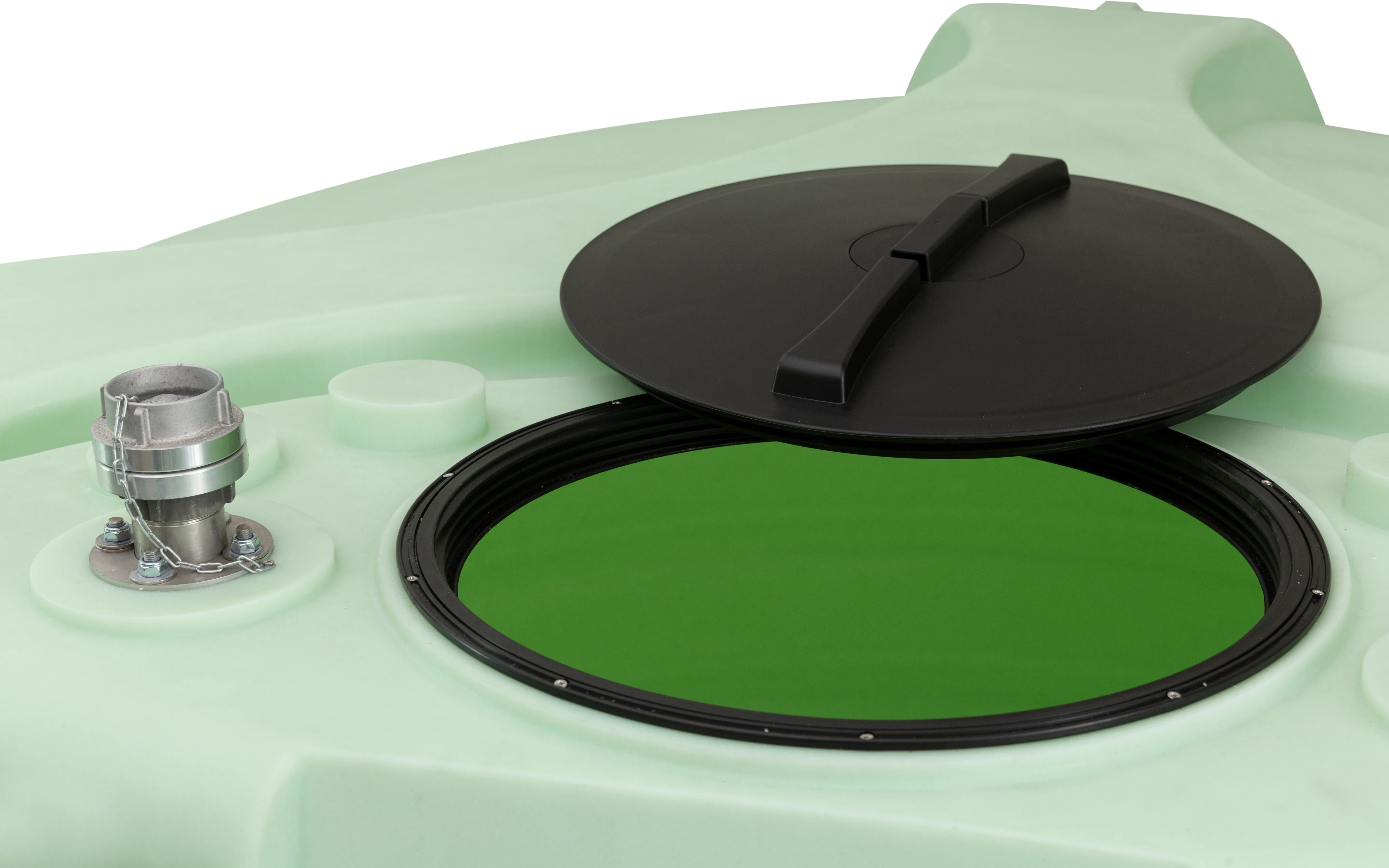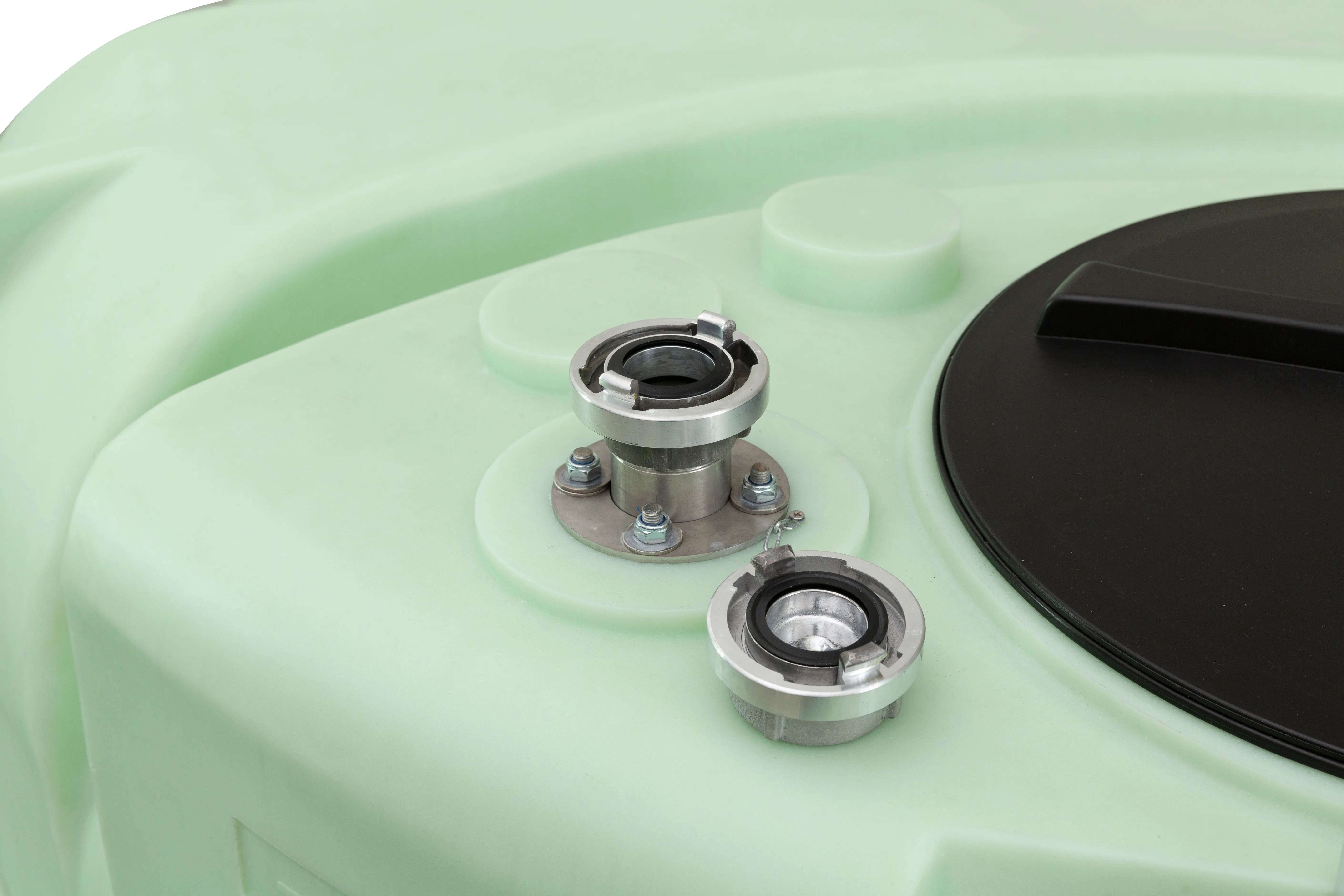 - —2 collu nerūsējošā tērauda uzpildes caurule ar STORZ alumīnija savienojumu tvertnes augšpusē