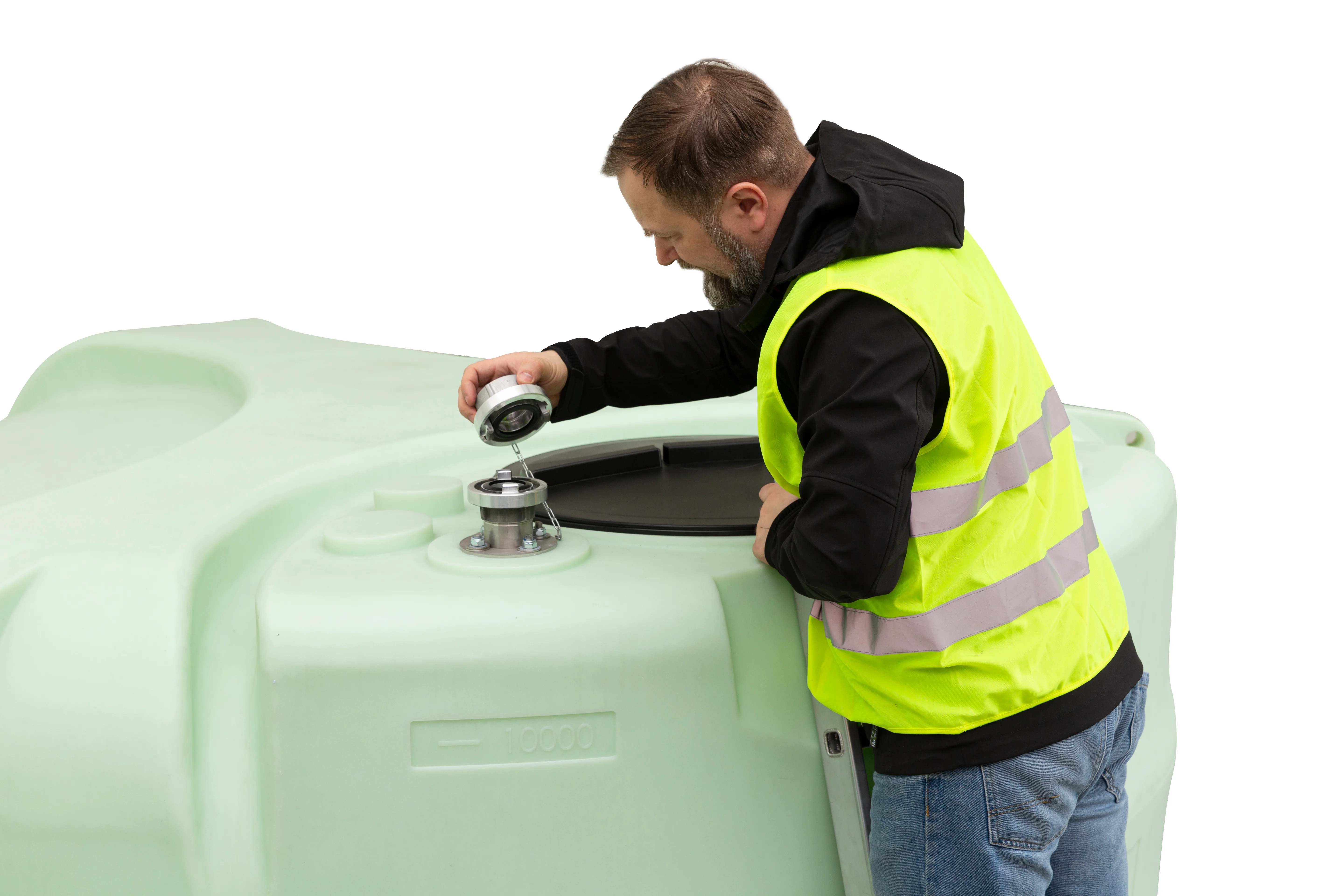 - —2” PVC-U uzpildes līnija ar PVC-U lodveida vārstu un STORZ alumīnija sakabe darba augstumā