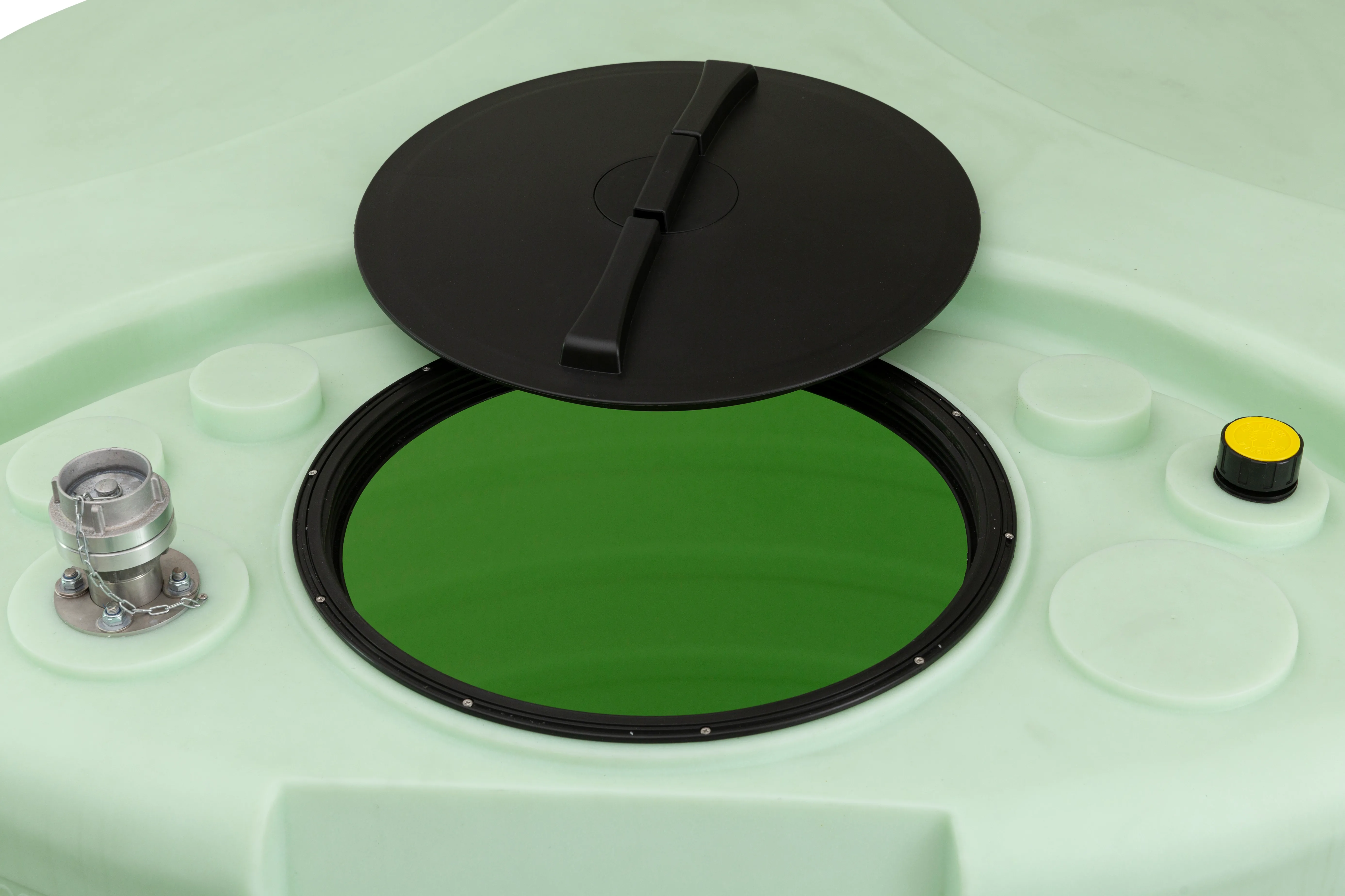 - —2 collu nerūsējošā tērauda uzpildes caurule ar STORZ alumīnija savienojumu tvertnes augšpusē